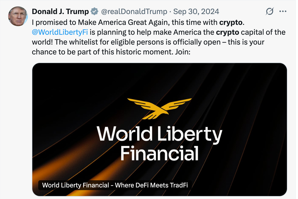 Trump is the Crypto President! This has been great for the crypto industry over the past year. And great for Trump family wealth.